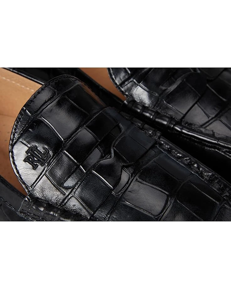 - Effortless elegance meets timeless style in the Lauren Ralph Lauren® Wynnie Crocodile-Embossed Leather Loafer. Crafted from richly textured crocodile-embossed leather upper, this luxurious loafer gleams with a refined gloss that turns heads in any setting. The almond-shaped toe and slip-on design offer a modern, streamlined silhouette, while the tonal “LRL” embroidered logo at the vamp adds an understated yet unmistakable signature touch. Sink into all-day comfort with a cushioned insole and supple leather lining, while the buffed leather outsole provides a smooth finish.