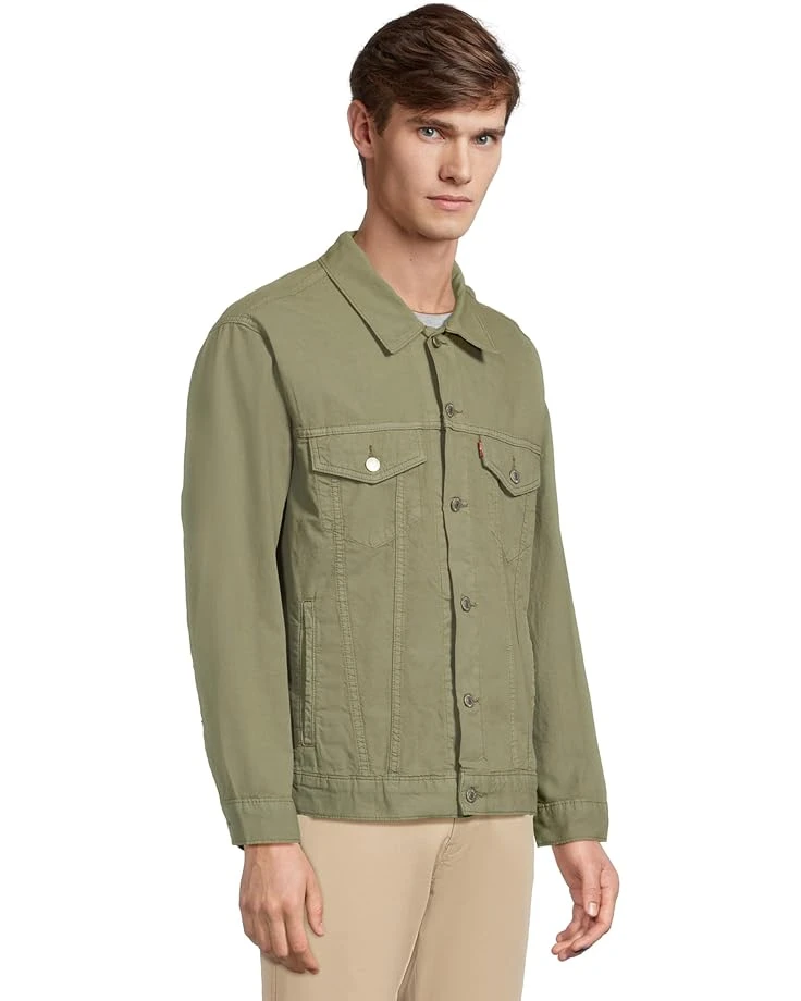 - Levi’s® Premium Relaxed Fit Trucker jacket makes an outfit-and its style endures beyond seasons and trends. Meant to be worn forever, wherever, whenever, you’d be hard-pressed to find a jacket with an easier shape, more versatile weight or inherent sense of cool. Featuring collared neckline, long sleeves, button front closure, branded metal buttons and tapered “V” stitches make it instantly recognizable, and two chest pockets with button closure. This one is cut with a loose fit for an easy, relaxed look.