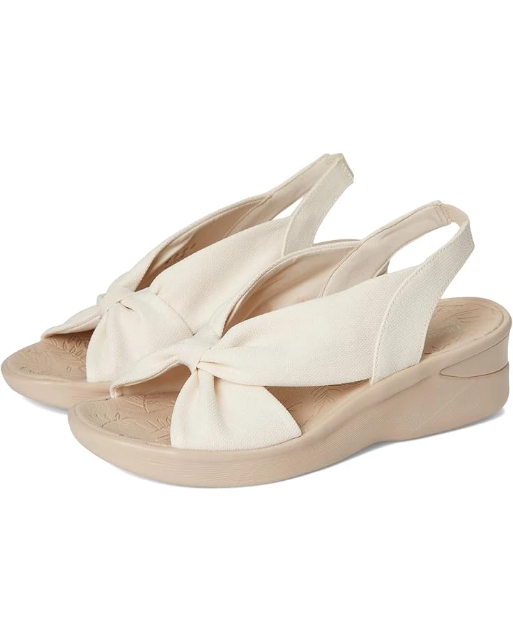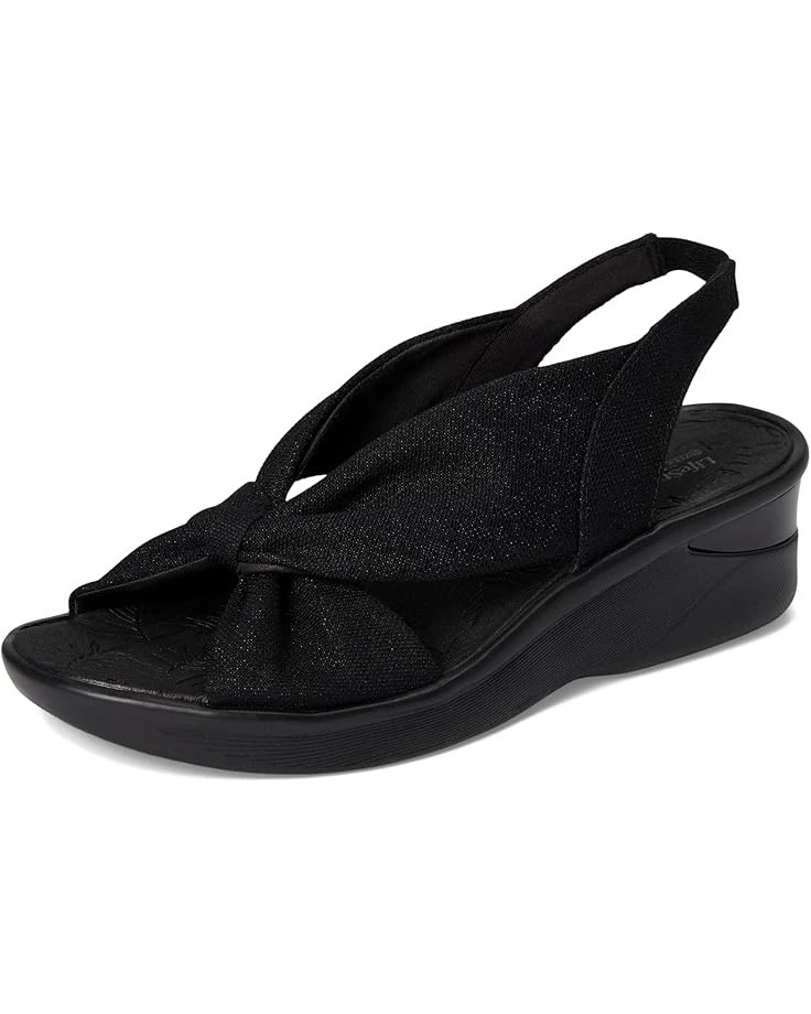 - Comfort and lift in every step! Elevate everything in these LifeStride® Serenade Slingbacks sandals with a wedge heel and stylish bow detail. Crafted from stretch fabric upper with a round toe design. BZEES Air Step Technology: Designed so you’ll feel weightless, energized and free. Ultra Lightweight: Step lightly with a nearly weightless feel. Dynamic Stretch Fabrics: Move freely in shoes with built-in stretch. FreeFoam™ Comfort: Low pressure insoles with maximum foot contact and cushy arch support. Germicidal and Odor Control technology. Get Width It: Countless pairs of Bzees come in wide width shoes for women. Machine Washable: Wash on cold and air dry.