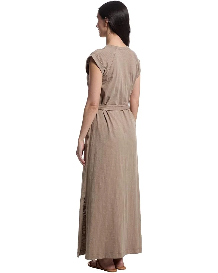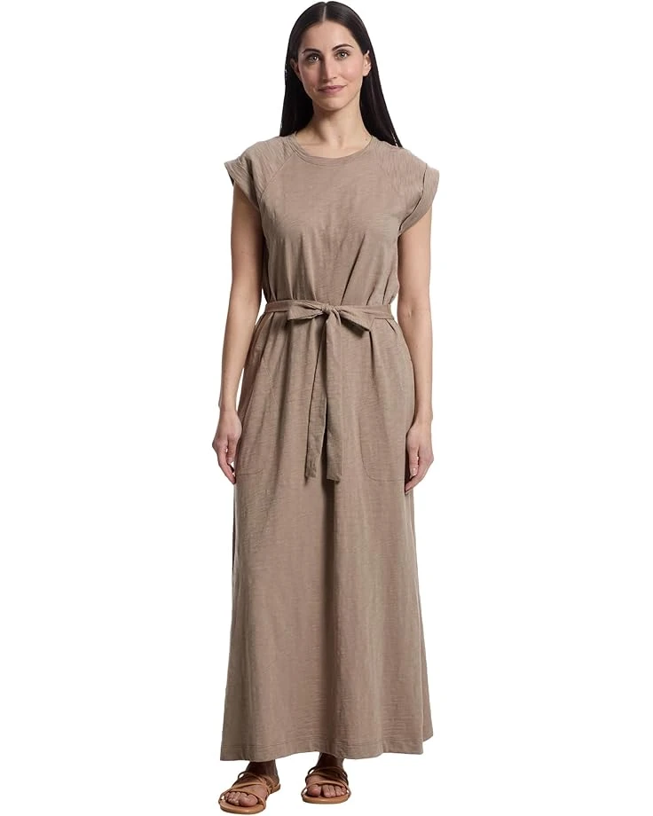 - The Lilla P™ Saddle Sleeve Maxi Dress takes the classic tee shirt dress to the next level. Made from lightweight Loose Knit Slub fabric, this dress features side slits, side pockets, and an optional self-belt for versatile styling. Simple yet anything but basic, it can be dressed up or paired with sandals for an effortless look. This maxi dress is styled with short cap sleeves, a jewel neckline, and a straight hem. Stylish and comfortable, this dress is sure to become a seasonal favorite.