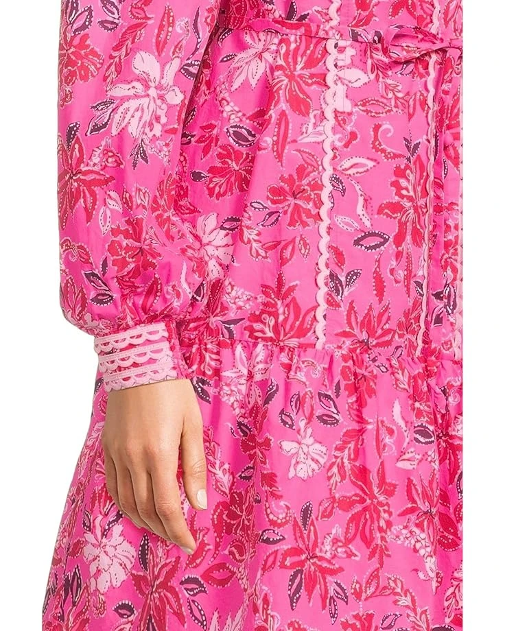 - The Lilly Pulitzer® Arletta Dress is the perfect staple piece for casual outings or fun gatherings. The easy-fit, button-front shirtdress features a stand collar, front bib with pintucks, long sleeves, hem ruffle, separate self-belt, and Lilly lace trim. Intended to hit above the knees, this pull-on style dress comes in an exquisite floral print.
