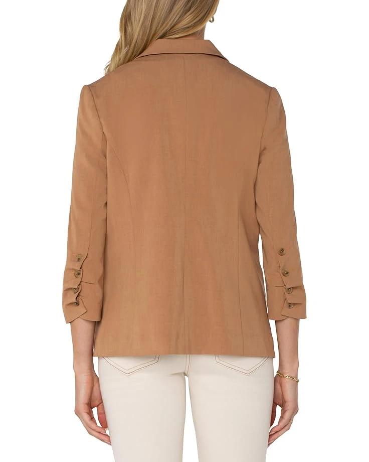 - Experience instant coolness and sophistication wearing the Liverpool™ Los Angeles Fitted Blazer With Ruched Sleeves. Perfect for business meetings or a casual day with denim and your go-to tee, the blazer boasts notch lapel collar and button adjustable three-quarter ruched sleeves.