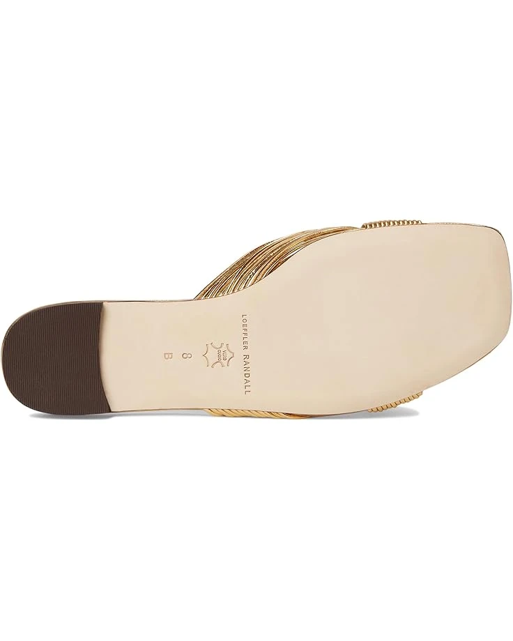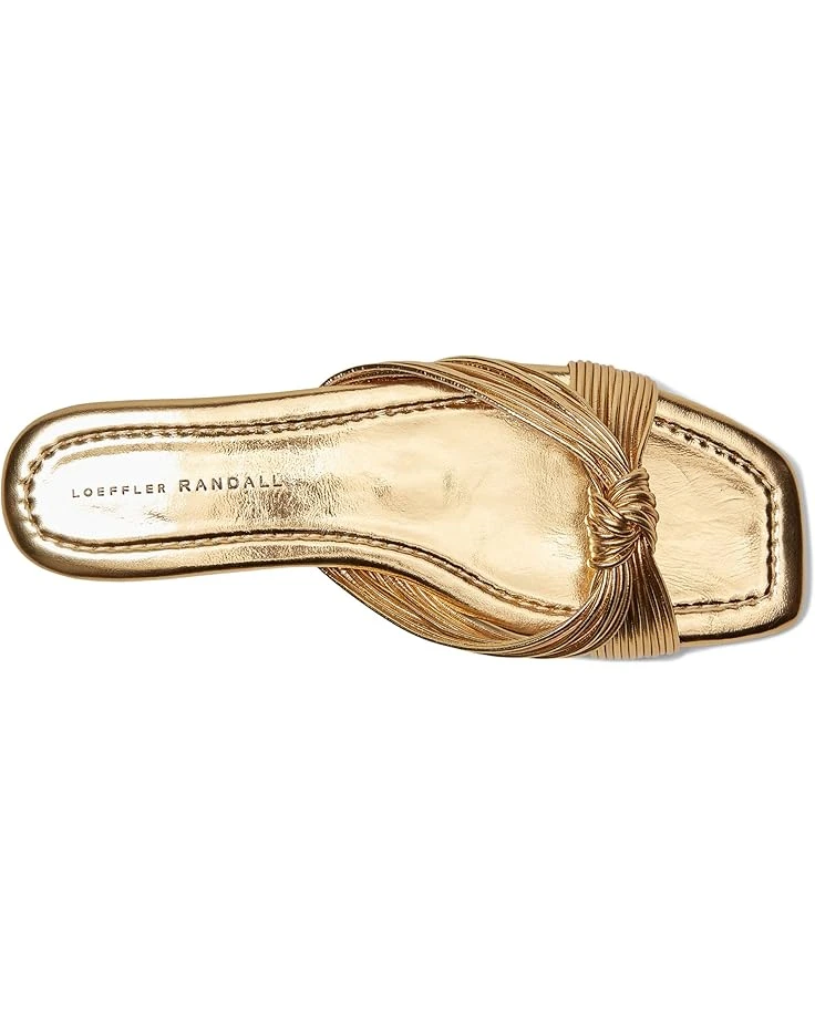 - The Loeffler Randall® Flossie Mignon Knot Flat chic sandal features a knotted upper design, a comfortable low stacked heel, and a padded footbed for all-day wear. Crafted from leather upper, lining, and insole, this pair of sandals features open square toe, slip-in style, and brand detailing on the footbed.
