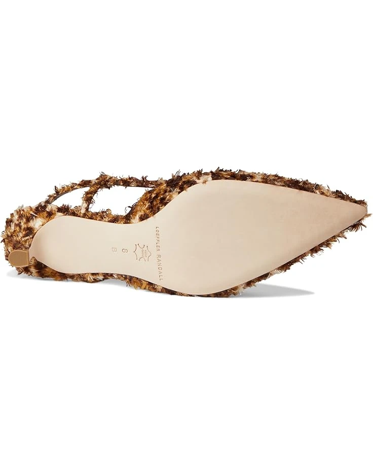 - Celebrate your special evening wearing the Loeffler Randall® Tyson Smocked Sling Back Kitten Heel with your favorite dress. Crafted from polyester upper, leather lining, and polyester insole, this pair of sandals features pointed toe, leopard print fabric, textured finish, an adjustable strap and a padded footbed with gold-stamped logo.