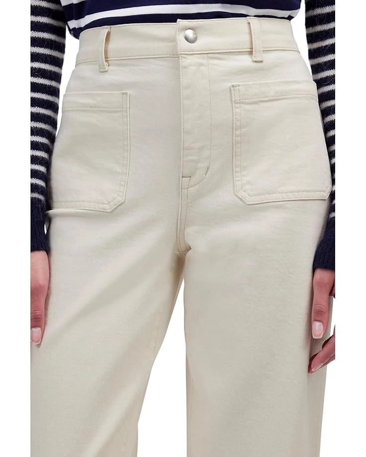- Flex a sleek and stunning style as you head out for casual outings or special occasions wearing Madewell® White Patch Pocket Emmett With Let Down Hem In Vintage Canvas Jeans. The pull-on style jeans features a high-rise waist with belt loops, a zip-fly & button closure, two patch pockets on the front each on the front & back, and a wide-leg style with a raw hem.