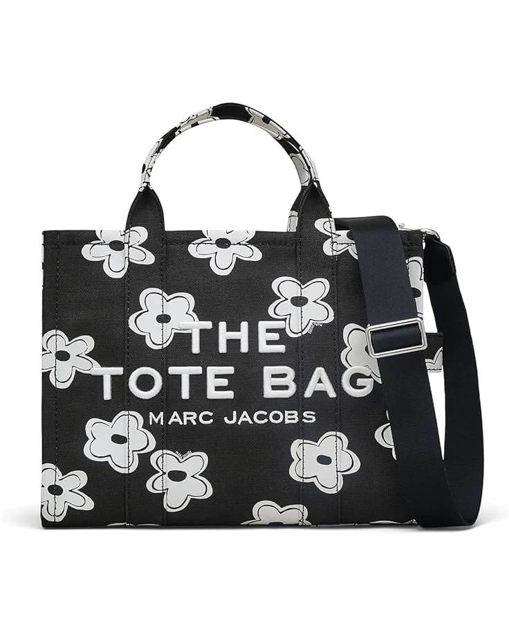 - Add a pop of playful elegance to your style carrying the Marc Jacobs® Daisy Canvas Medium Tote! Crafted from durable canvas material for everyday use, this bag features two short handles and a detachable long strap for effortless shoulder or crossbody wear. Adorned with the iconic Daisy print, it brings a cheerful flair to any look. With its adjustable crossbody strap and a sleek brand logo on the front, this tote combines practicality and fashion. Spacious and stylish, it’s perfect for daily essentials, making it your go-to accessory for a modern, on-the-go lifestyle.
