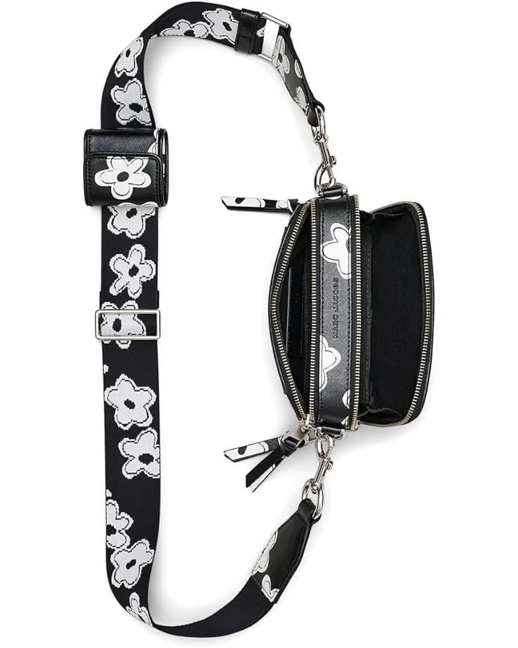 - Pop of personality, practical design: The Marc Jacobs® Daisy Snapshot. This sleek leather bag features two spacious compartments, perfect for keeping your essentials organized. The zippered closure ensures security, while the exterior slip pocket provides easy access to your phone or keys. Adorned with the signature daisy print all over, it adds a playful touch to any outfit. A removable and adjustable crossbody strap offers versatile wear, whether you’re styling it as a shoulder bag or across your body. Plus, a small pouch attached to the strap keeps your cards or small items close at hand.