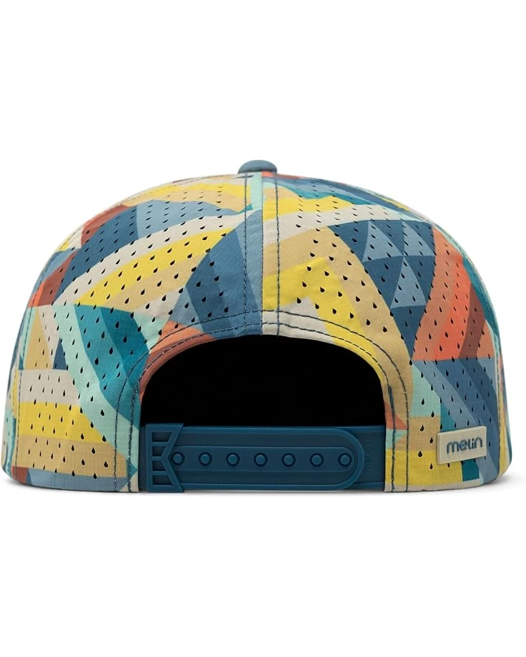 - Top off your stylish look wearing the classy melin® Hydro Coronado Brick GeoPop. Bursting with vibrant colors, this hat allows you to unleash fun with your own style. Made from breathable, water friendly, lightweight, and durable material, this hat features straight brim, adjustable snapback closure, button on top, five panel construction, and branding badge on the front.