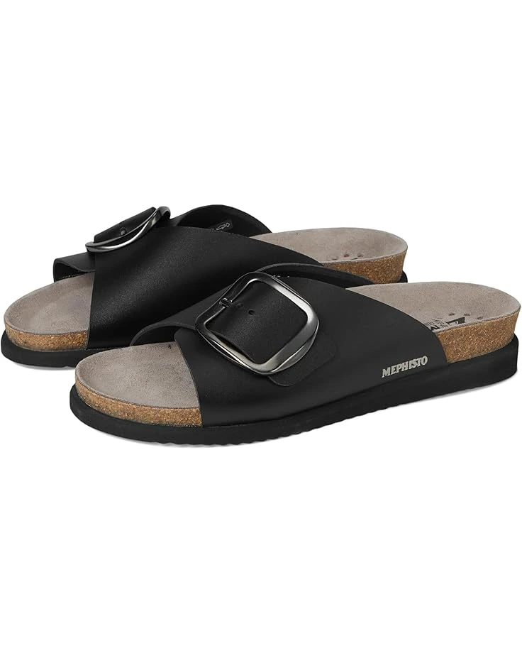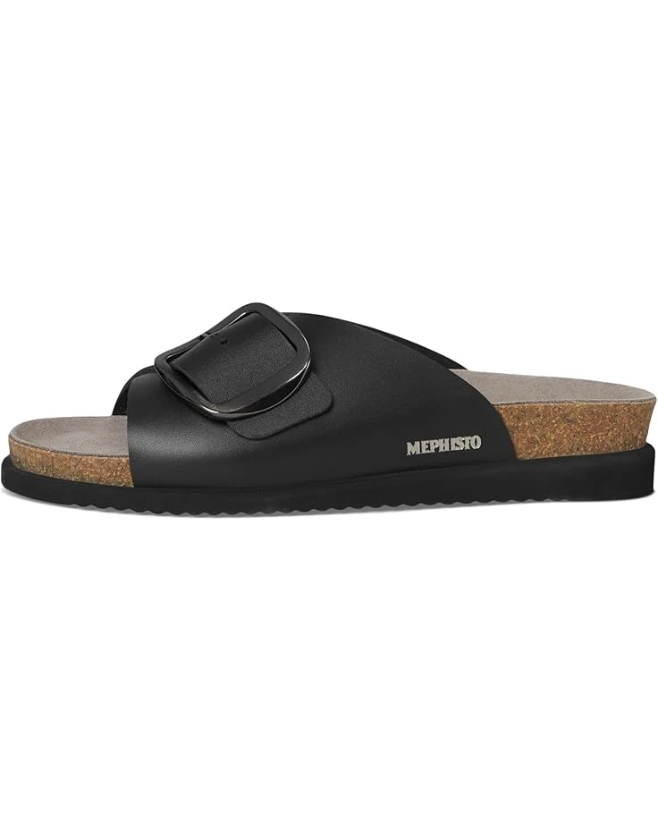 - The Mephisto® Hariana slides look casual and ensures premium comfort with every step. The unique SOFT-AIR technology integrated into the cork midsole ensures fatigue-free walking and AIR-RELAX technology respects the anatomy of the foot to prevent arch collapse. The open-toe, slip-on style slides are crafted full-grain leather upper and a cork footbed. the adjustable strap with buckle closure ensures a secure fit.