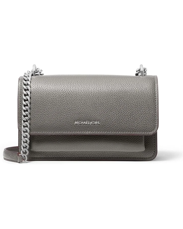 - Get ready to turn heads carrying the MICHAEL Michael Korsยฎ Claire Large Shoulder bag! Made of semi-shiny pebble leather, this luxurious accessory features a versatile chain-link and leather strap that can be worn crossbody or doubled up on the shoulder. The flap closure with a magnetic snap keeps your belongings secure, while the exterior front slip pocket adds extra convenience.