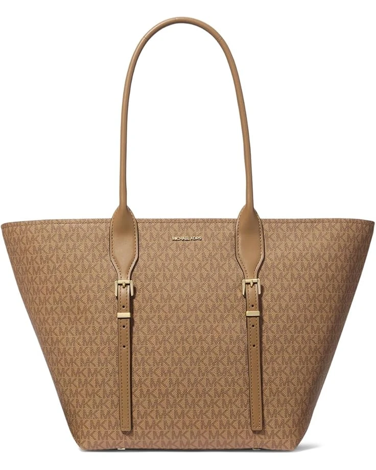- Get ready to make a stylish statement carrying the MICHAEL Michael Kors® Moore Large Buckle Tote! Made from durable polyvinyl chloride material, this tote features dual top grab handles with chic buckle accents. Keep your belongings secure with the convenient zippered top closure. Perfect for work or weekend outings, this tote is both practical and fashionable.