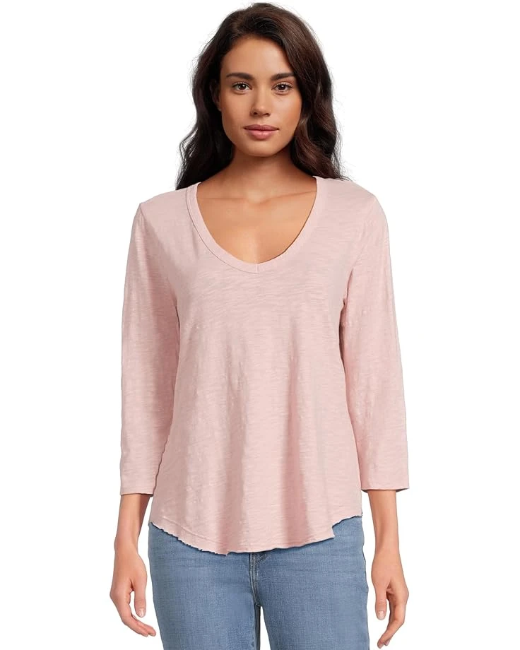 Mod-o-doc 3/4 Sleeve V-Neck Tee with Curved Hem | Shirts & Tops