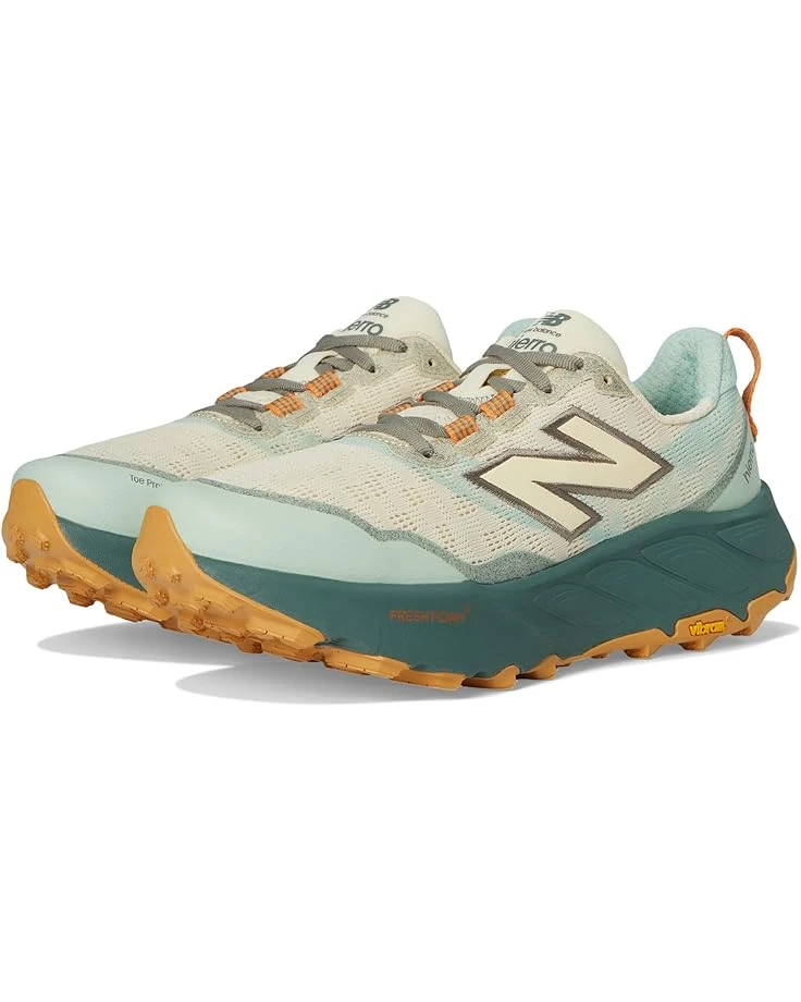 - Take every adventure to the next level sporting the New Balance® Fresh Foam X Hierro v9, engineered for peak performance on rugged terrain. The breathable mesh upper with abrasion-resistant detailing and Toe Protect shields against rocks and debris, while the gusseted tongue ensures a secure fit. A dual-density Fresh Foam X midsole blends a firmer bottom layer for stability with a plush top layer for all-day comfort. The Vibram® outsole-with an enhanced tread pattern, larger lugs, and micro-traction-delivers best-in-class grip on any terrain. Finished with a cotton lining, EVA insole, and durable rubber outsole, this lace-up trail beast is built for adventure!