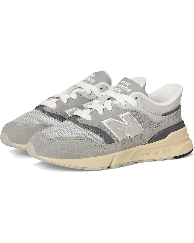 - Designed to match your kid’s everyday comfort and style, the New Balance® Kids 997R shoes are crafted with a split suede and mesh upper that offers long-lasting comfort and durability. The fabric insole and lining keep your kid’s feet cool and comfortable. Cushioned and stylish, these lace-up sneakers are perfect to pair with your kid’s different outfits.