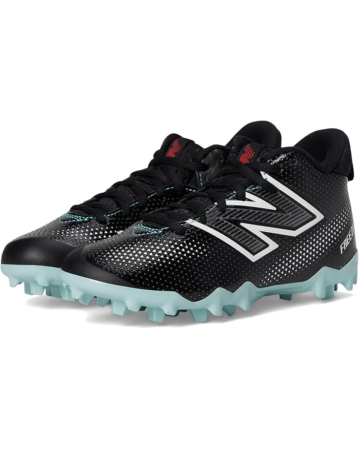 - Conquer the field in style wearing the New Balance® Kids FreezeLX v5! Engineered for young champions, these cleats feature a durable synthetic and mesh upper for unbeatable stability and breathability. The cotton lining ensures all-day comfort, while the EVA insole cushions every step. Designed with a TPU molded cleat rubber outsole, it offers superior traction on both turf and natural surfaces. A traditional tongue and adjustable lace closure deliver a secure, customizable fit. Inspired by the iconic adult FreezeLX models, these cleats combine pro-level performance with kid-friendly flair.