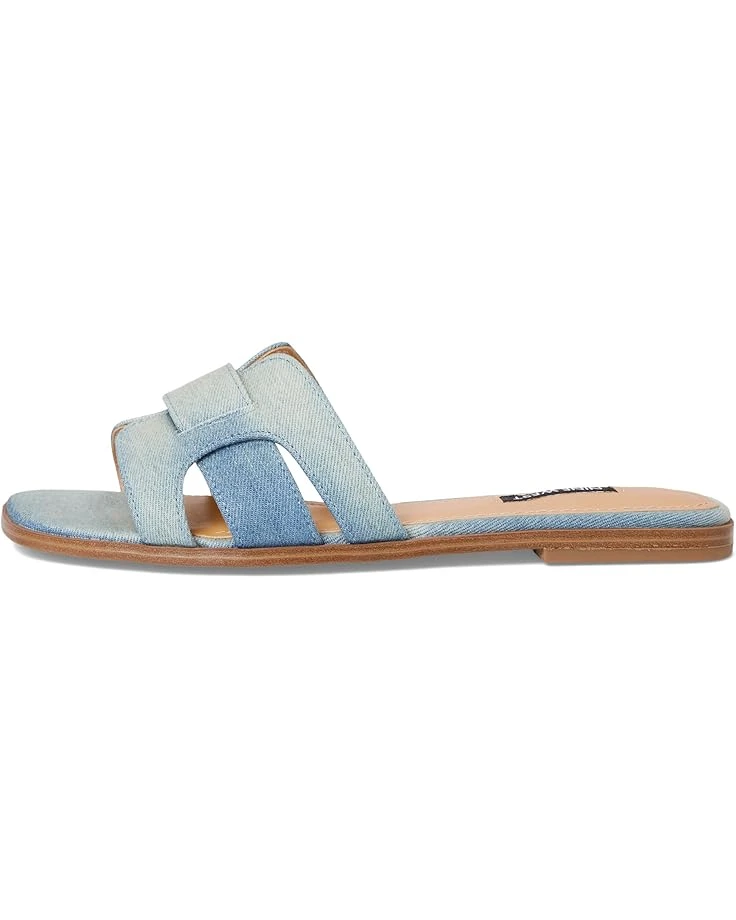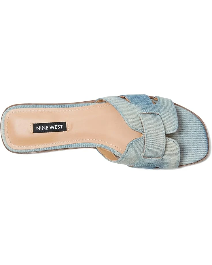 - Step lightly in style wearing the Nine West® Germani. Crafted from leather upper, man-made lining, this pair of sandals features open round toe, slip-on style, flat heel, and brand detailing on the footbed.