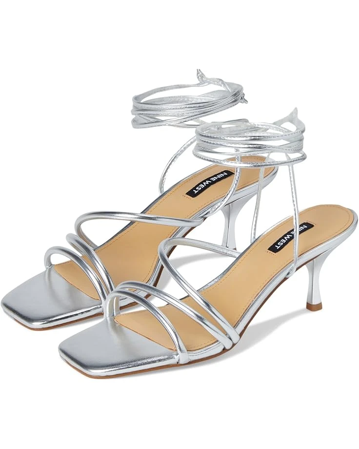 - A legacy of style, reimagined wearing Nine West® These chic dress sandals feature a luxe faux leather upper and a strappy silhouette that hugs your feet with style. The trendy square toe and delicate tie closure at the ankle create a sophisticated yet playful look, while the tapered kitten heel adds just the right amount of lift for all-day comfort. Designed for versatility, the Hendy is your go-to for everything from power meetings to evening soirées.
