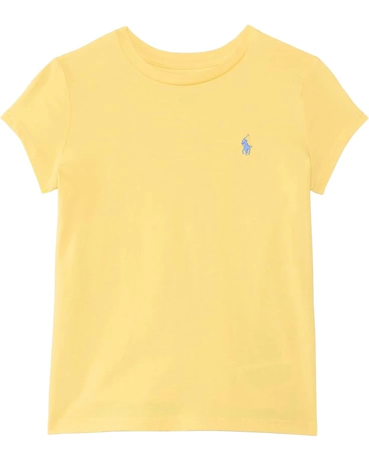 - Add soft and luxurious comfort to your everyday style wearing Polo Ralph Lauren® Kids Cotton Jersey Tee. The pull-on style tee features a crew neckline, short sleeves, and a straight hem. Crafted with cotton jersey, the tee is washed for enhanced softness and embroidered with signature pony detail on the left chest.