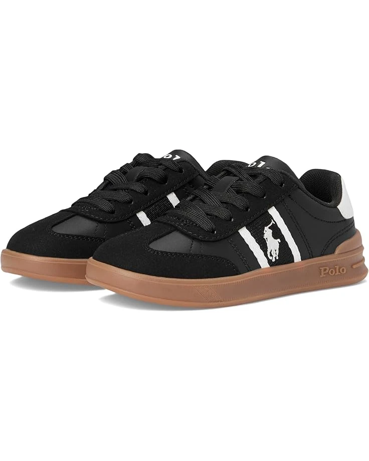 - Step up their style game donning the Polo Ralph Lauren® Kids Heritage Court III T-Toe – the ultimate blend of iconic design and all-day comfort! Featuring a sleek PU upper and outsole, these shoes offer a durable, polished look that stands the test of time. The closed-toe design keeps little feet protected, while the lace-up closure ensures a secure, customizable fit. Inside, the lightly cushioned rubber insole adds a touch of comfort to every step. With a polyester lining to keep feet fresh and supported, this classic style from Polo Ralph Lauren is perfect for both play and casual outings.