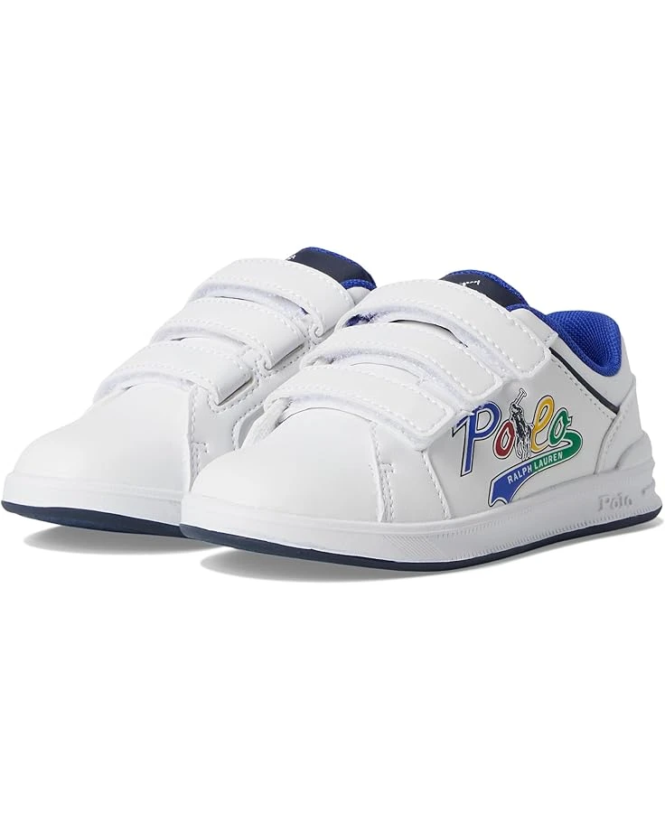 - Let those little toes feel as comfortable as possible wearing Polo Ralph Lauren Kids® Heritage Court IV Graphic EZ Shoes. The round-toe shoes for toddlers are crafted with a polyurethane upper, polyester lining, and a cushioned rubber insole. The double hook-and-loop strap allows easy on/off and the signature branding on the side panel & tongue makes them a genuine pick for your little one.