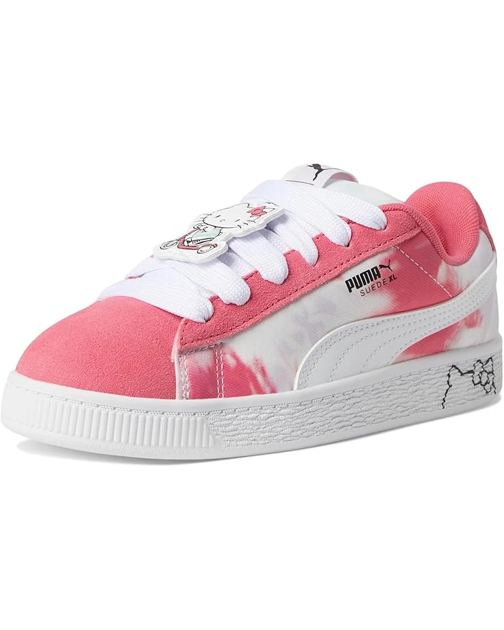 - This fresh take on the classic suede draws inspiration from PUMA’s heritage within breakdancing and its influence on modern streetwear. The PUMA® Kids Suede Xl Hello Kitty And Friends The Suede’s Iconic DNA, but gives it a twist with an exaggerated padded collar and tongue, plus a chunkier sole. In this New PUMA X Hello Kitty And Friends Collection, Hello Kitty And Her Friends roller skate along the beautiful coast of Los Angeles. The collection is inspired by beach vibes, with a watercolor effect inspired by La Sunsets. Targeting pre-schoolers, this girly collection features skate-inspired vibes, trendy silhouettes, and new materials, for a unique and fun approach. The low-top sneakers feature suede upper. polyester lining, and rubber insole.