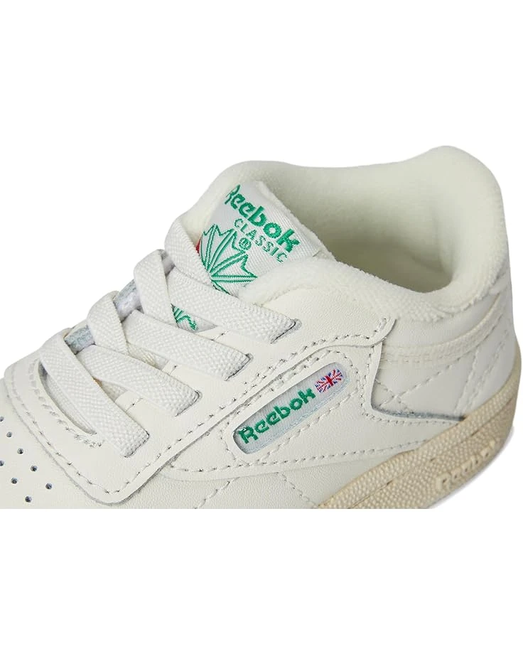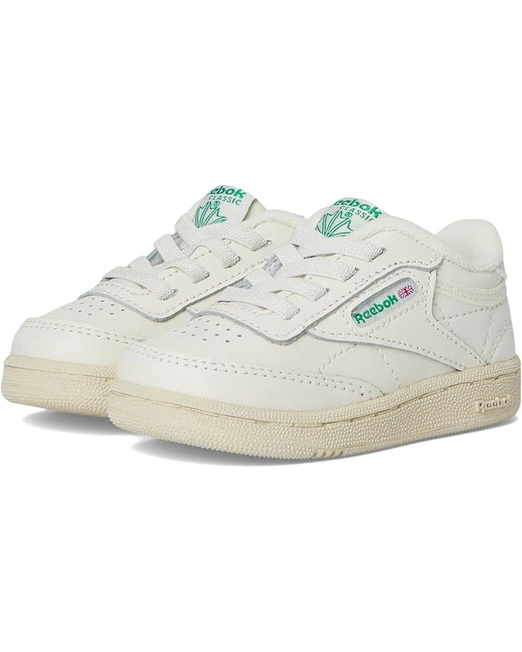 - Bring absolute comfort to your little ones’ feet with the Reebok® Kids Club C Sneakers. The low-top sneakers are engineered with a rubber upper, synthetic rubber lining, and a cushioned rubbed insole. The lace-up closure is designed for a secure fit and the Reebok® branding on the tongue, side panel, & back adds an authentic touch.