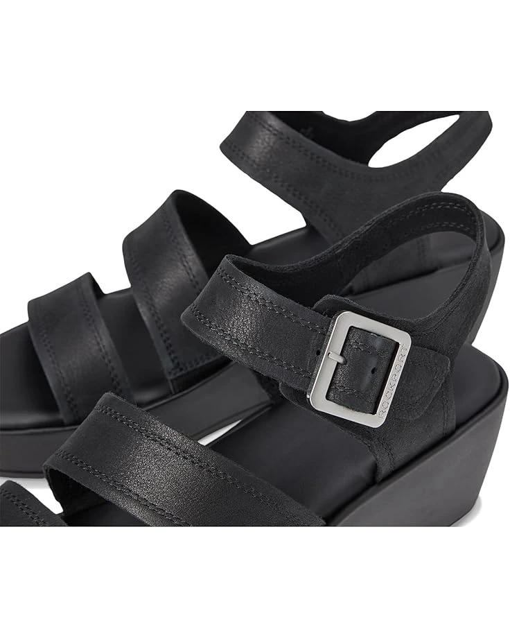- Look chic and comfortable in the Rockport® Anala wedge sandals. It offers a strappy silhouette, open toe design, and an adjustable ankle strap for a secure fit. These sandals will keep you looking stylish all day and night. Featuring truTECH® technology for lightweight shock absorption. The sandals feature leather upper, polyester lining, and foam insole.