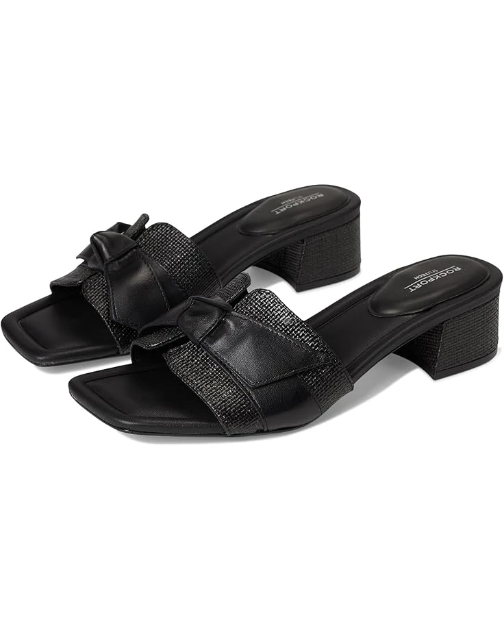 - The Rockport® Carsie dress sandal is an epitome of sophisticated style. It offers a slip-on silhouette and bow detailing on the upper. This sandal will keep you looking chic all-day. Featuring open square toe, Trutech® technology for lightweight shock absorption, block heel, and brand detailing on the footbed.