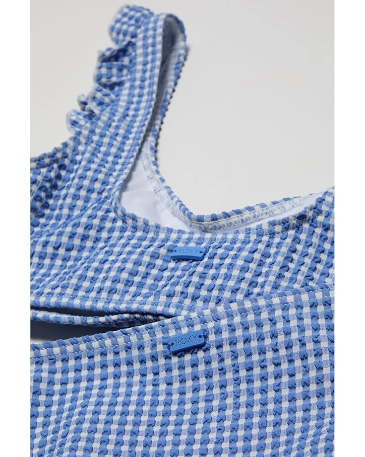 - Add a touch of whimsy to your beach look wearing Roxy™ Kids Check Me Out Bikini Set. The bikini top features two shoulder straps with frill detail, a sweetheart neckline, and a checkered allover print. The matching printed pull-on style bottoms feature a regular-cut silhouette.