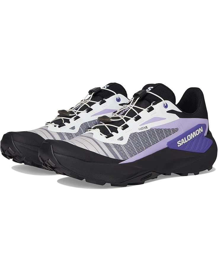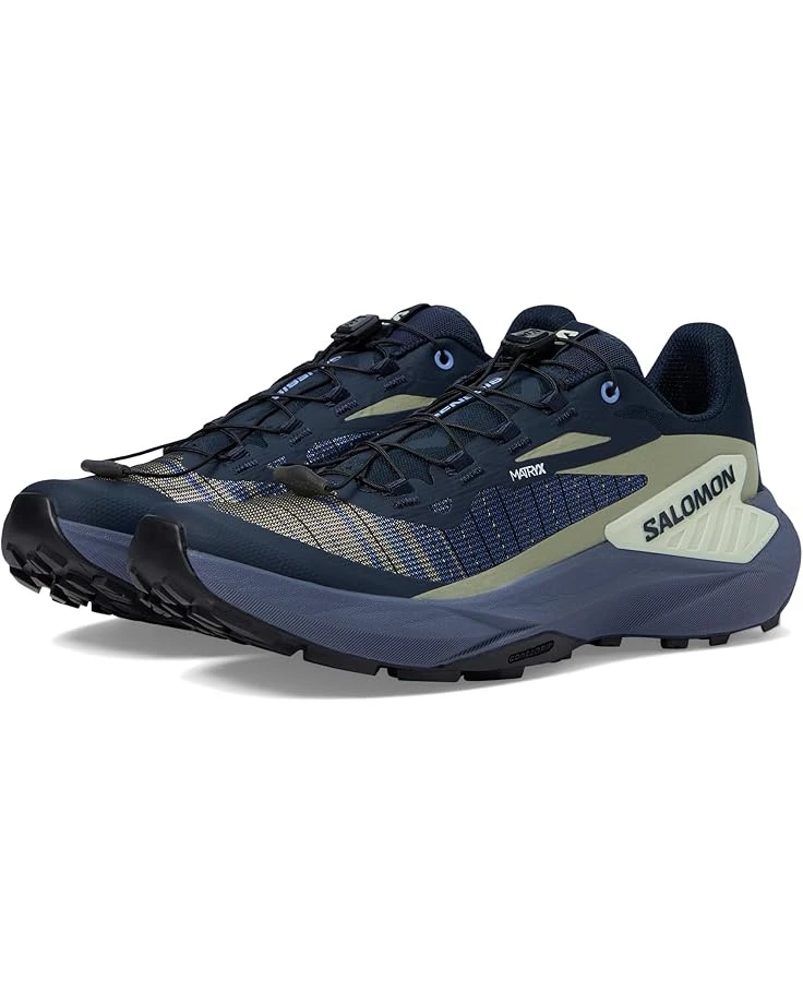 - Step into greatness wearing the Salomon® Genesis. It is crafted from woven Matryx upper that effectively resists the elements of the trail, leather lining and leather insole. This pair of shoes features round toe, Energy Foam footbed with Active Chassis for balanced performance, lace detailing with bungee closure and brand detailing on the sides, tongue and footbed.