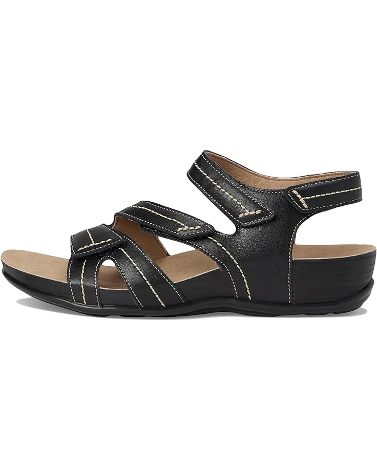 - Stylish, supportive, and built to move: The SAS® Swerve Adjustable Comfort Sandal blends timeless style with next-level comfort, featuring a genuine leather upper available in a variety of colors and textures. Lined with soft microfiber fabric, it delivers a plush, skin-friendly feel with every step. Designed for a customized, secure fit, the adjustable hook-and-loop closure lets you find your perfect comfort zone with ease. A polyester insole contours to your foot’s natural curves, providing arch support and seamless cushioning. Finished with a durable PU outsole, this sandal offers flexibility, shock absorption, and all-day wearability-whether you’re strolling through the city or unwinding on vacation.