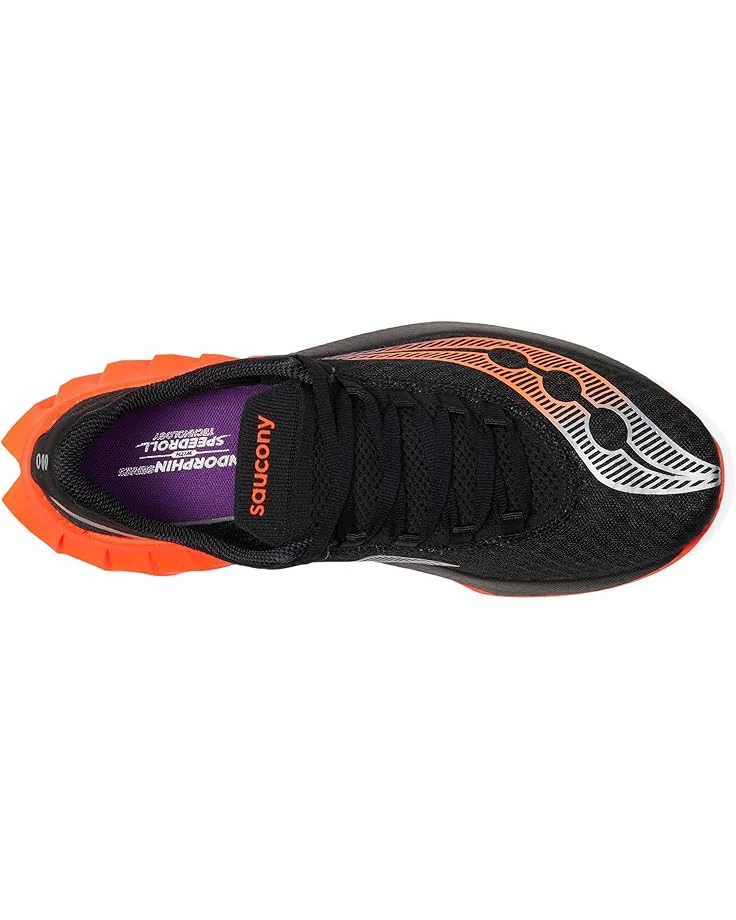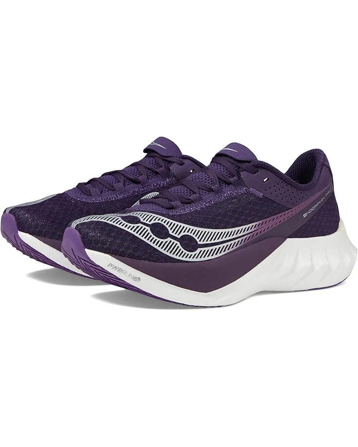 - Reach your destination without feeling tired wearing Saucony® Endorphin Pro 4 sneakers. It has textile/synthetic upper, textile lining, and PWRRUN PB removable footbed. A lace-up closure, round bump toe, and padded collar provide right support on stress points. A colorful signature pattern give stunning look to the sneakers.