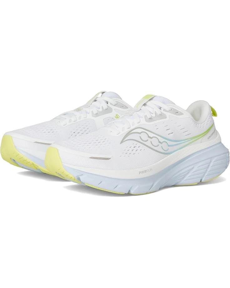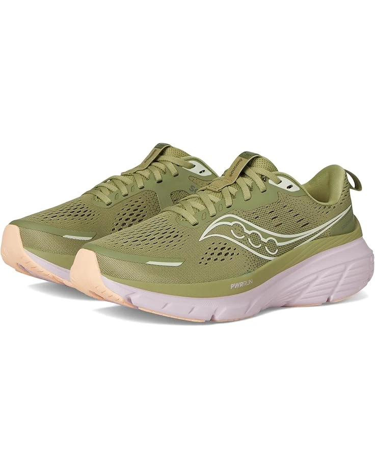 - Power through your day sporting the Saucony® Guide 18, a perfect fusion of style, support, and all-day comfort. Featuring a premium leather upper for durability and a sleek look, this sneaker keeps you cool with its breathable mesh design and soft nylon lining. The EVA insole cradles your foot with plush comfort, while VERSARUN cushioning absorbs impact, reducing pressure for a smooth ride. A sturdy rubber outsole offers superior grip and durability, keeping up with your every move. With a offset and a secure lace-up closure, this shoe is built for effortless, stable strides-wherever life takes you!