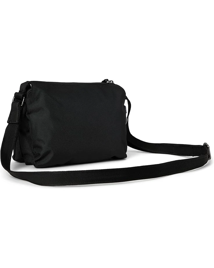 - A stylish, lightweight crossbody to bring on your next trip. The inside of the Sherpani® Mei AT features effortless organization, and the outside is equipped with Sherpani anti-theft tech. Explore more with everything in its place (including your peace of mind!). The combination of recycled Mélange and Ballistic nylon fabrics makes up this lightweight, water-resistant, and durable bag, while still delivering a sophisticated look. The interior lining of the bag is a pale color which allows easier visibility when searching for items. Features polyester construction with vegan leather trim and detailing.