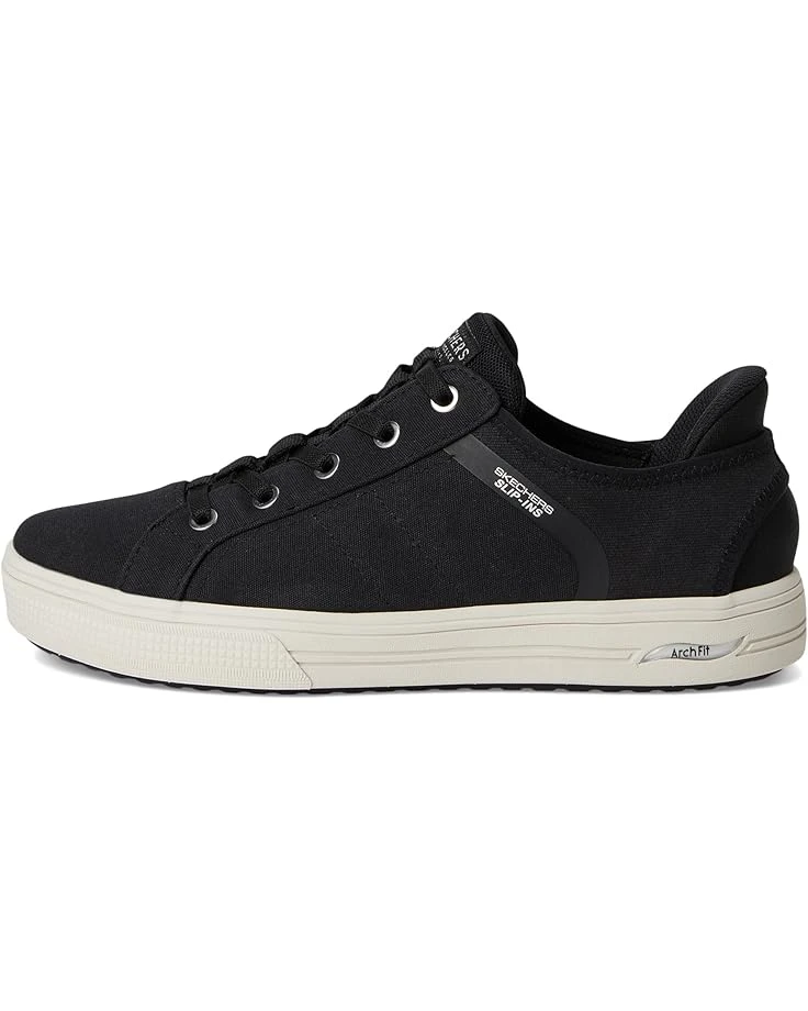 - Upgrade your comfort game: SKECHERS® Arch Fit Arcade-Forever Cozy Hands Free Slip-Ins. Experience ultimate comfort with the PU upper and polyester lining. Slip into effortless style with the innovative Hands Free Slip-Ins design for quick and easy on/off. These sneakers feature a patented Arch Fit™ insole system with podiatrist-certified arch support that provides all-day comfort and reduces foot fatigue. The removable insole molds to your unique foot shape, while the exclusive Heel Pillow™ offers added stability and support.