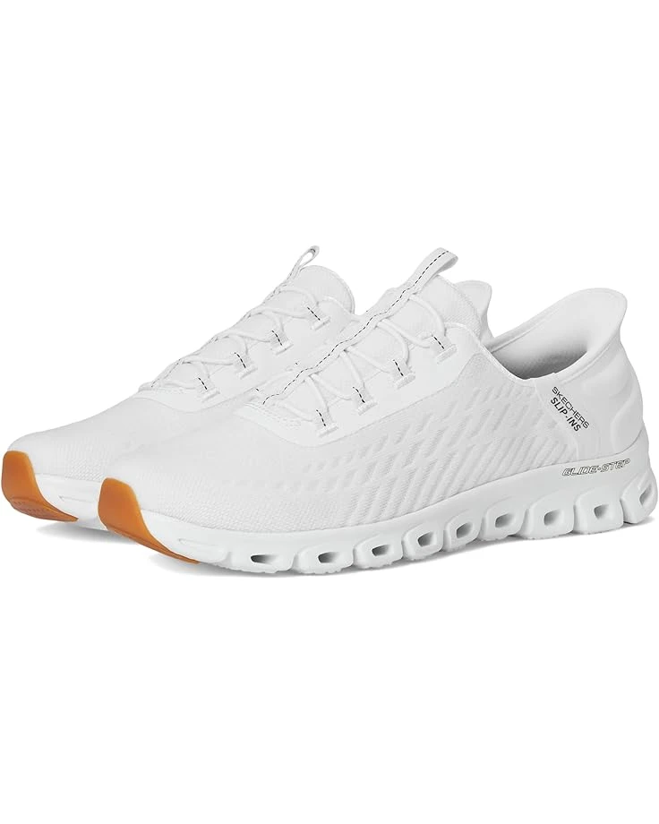 - Make every step a breeze wearing SKECHERS® Glide Step Tranquility Hands Free Slip-Ins! These slip-on shoes feature an engineered mono-mesh upper with fixed stretchable laces for a snug and secure fit. The Skechers Air-Cooled Memory Foam® cushioned comfort insole provides unrivaled support and cushioning, while the Exclusive Heel Pillow™ ensures your foot stays in place with every stride. Walk with ease and comfort with the Glide-Step® geometric midsole, designed to enhance your natural momentum.