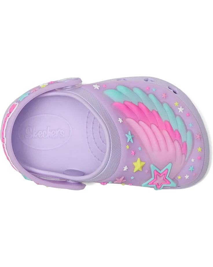 - Step up the fun in awesome comfort with the SKECHERS® KIDS Sweetheart 308367N shoes. These lighted wing-themed clogs are made of a sculpted Foamies EVA upper with a lighted wing vamp and a convertible heel strap. They are made of a contoured cushioned footbed, EVA insole, and synthetic rubber lining. Stylish and comfortable, these colorful clogs will be your kid’s favorite.