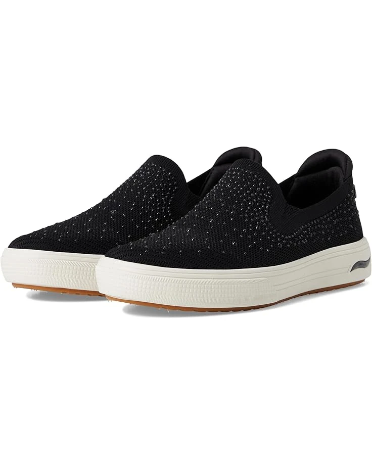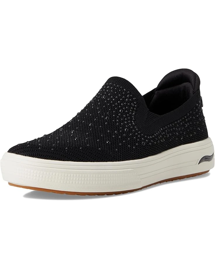 - With every step you take, the SKECHERS® Martha Stewart:Arch Fit Arcade Shoes bring in more and more comfort. The slip-on style shoes are designed with a polyurethane upper, polyester lining, lightweight cushioned midsole, and removable textile insole helps mold to your foot to reduce shock and increase weight dispersion. Plus, the patented Skechers® Arch Fit insole system with podiatrist-certified arch support adds to the comfort.