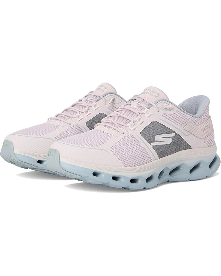 - Simply step into flexible comfort wearing the SKECHERS® Performance Go Walk Glide Step 2.0 Elektra Hands Free Slip-Ins. Designed with Exclusive Heel Pillow™ that holds your foot securely in place, this bungee lace slip-on style features grid mesh upper with hotmelt overlays, Skechers Air-Cooled Goga Mat™ breathable insole with high-rebound cushioning, and lightweight ULTRA GO® cushioned midsole. A well-cushioned walking shoe with fixed, tied-off stretch laces.