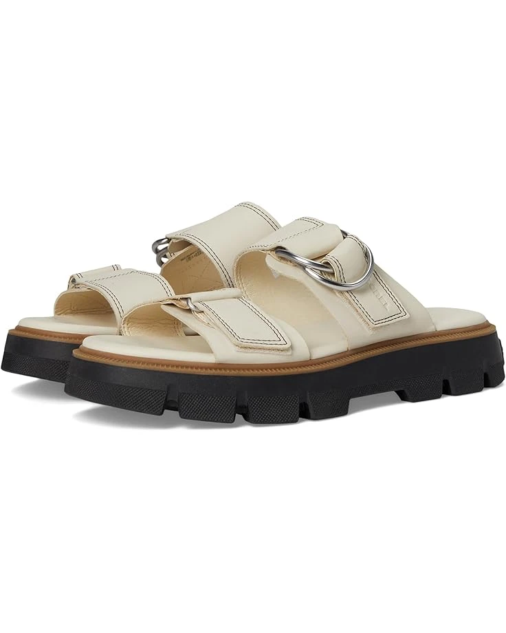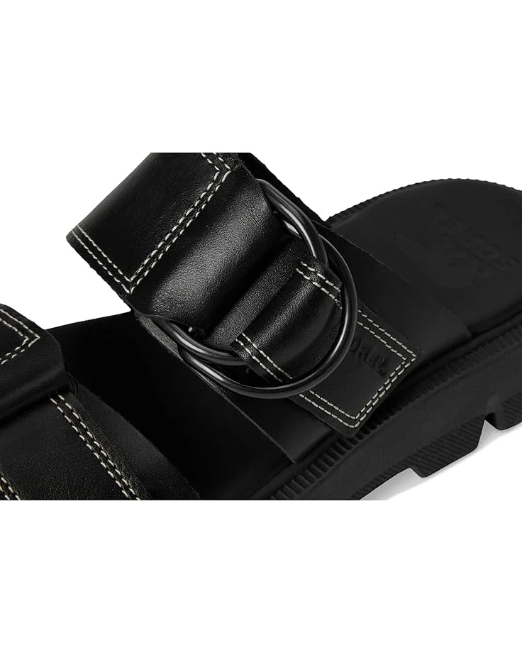 - This is a slide sandal that’s made to do more. More design details, more comfort, and more premium finishes. It’s the warm weather of the SOREL® Rein CB™ Slide Sandals. Crafted from full-grain leather upper with metal D-ring detail, synthetic lining, plush EVA foam footbed with synthetic topcover, molded FEATHERTREAD rubber with EVA drop-in midsole, and molded FEATHERTREAD rubber outsole.