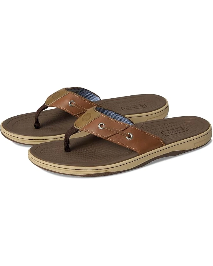 - The Sperry® Baitfish sandals are slide slippers that are perfect for your everyday wear. They are made of an EVA insole and cotton lining. The leather upper features a slip-on style for easy wear. Water-resistant and durable, these thong slippers make a great addition to your footwear collection.