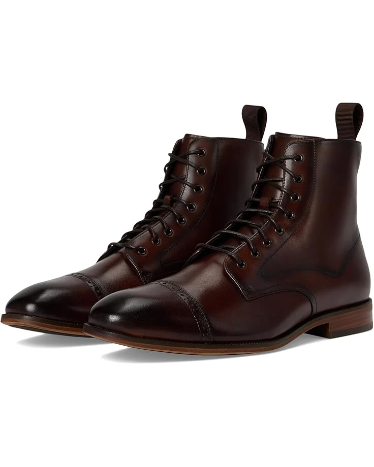 - The Stacy Adams™ Henry Cap Toe Lace-Up Boot is a standout for its rich leather upper and modern stacked heel. A versatile style every man should have in his collection, this boot can be worn for a variety of occasions. FlexZone removable footbed with molded heel cup and sustainable microfiber cover provides anatomical arch support that adapts to your stride for a more comfortable fit.