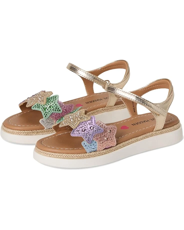 - Let your little one spark joy and get compliments wearing the Steve Madden® Kids Gems. Crafted from synthetic rubber upper, lining, and rubber insole, this pair of sandals features open round toe, aesthetic design, optimal comfort, platform heel, backstrap detailing with hook-loop closure.