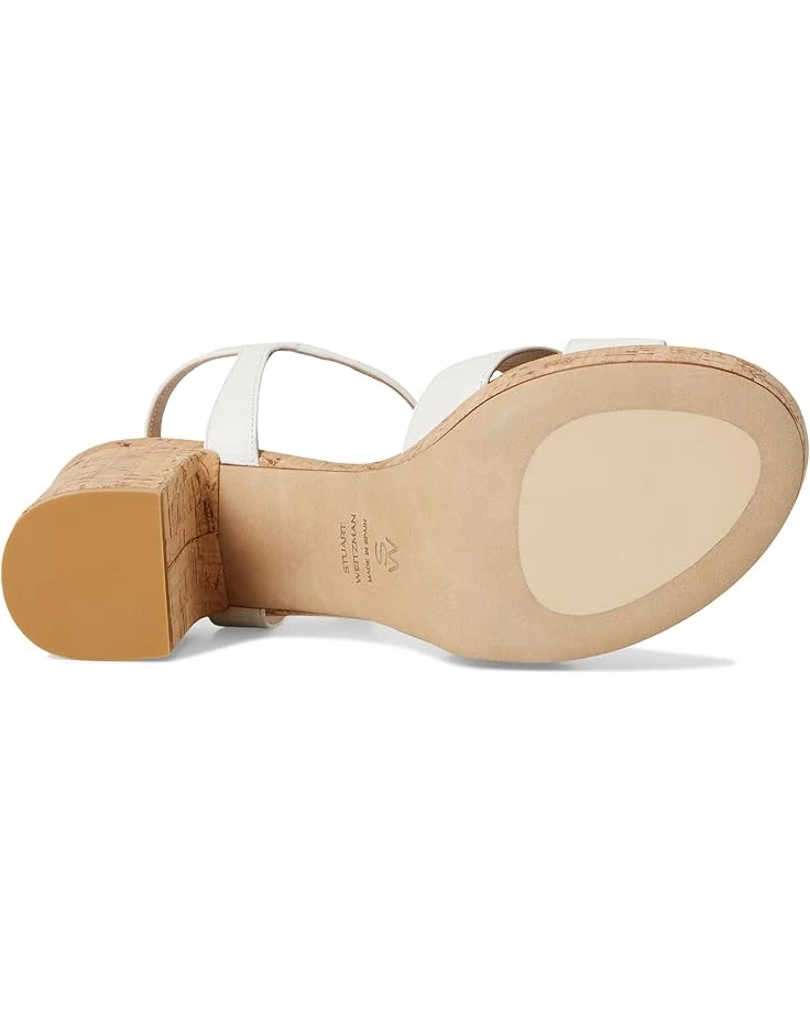 - Make every step powerful and stylish wearing the Stuart Weitzman® Dayna Platform 80. Crafted from leather, cork upper, leather, TPU lining, and leather insole, this pair of sandals features open round toe, crisscross strap vamp, block heel, ankle strap, buckle closure, and brand detailing on the footbed.