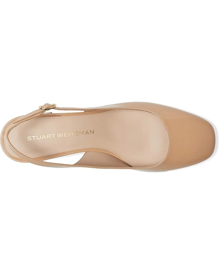 - Ideal for both professional and casual settings, the Stuart Weitzman® Maeve Slingback 35 is your go-to choice to exude everyday flair. Featuring a closed square toe, these low-top pumps boast a buckle adjustable slingback strap closure for a secure and customized fit, while the sturdy block heel provides all-day stability.