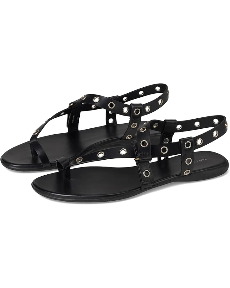 - The Tory Burch® Eyelet Toe Ring Sandals are beautiful and comfortable sandals that are perfect to pair with different outfits and styles. They are made of a rubber insole and leather lining. The leather upper is styled with a strappy design and an eyelet ring detail. Style up your outfits with these leather sandals.