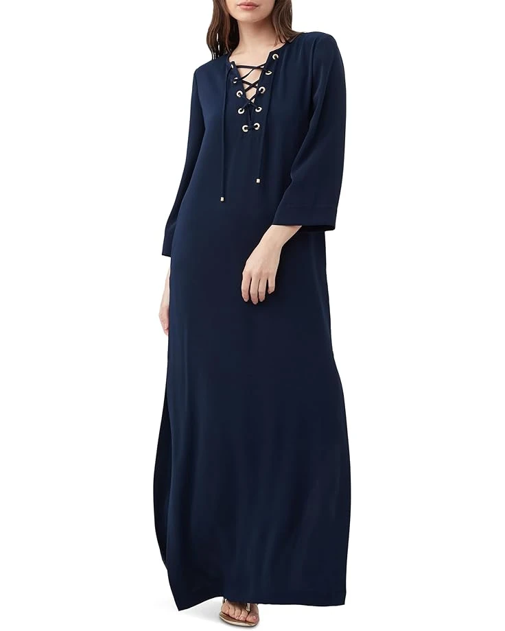 - The Trina Turk™ Catamaran Dress is a drapey maxi silhouette featuring a lace-up V-neckline, three quarter length sleeves, and side slits for ease of movement.