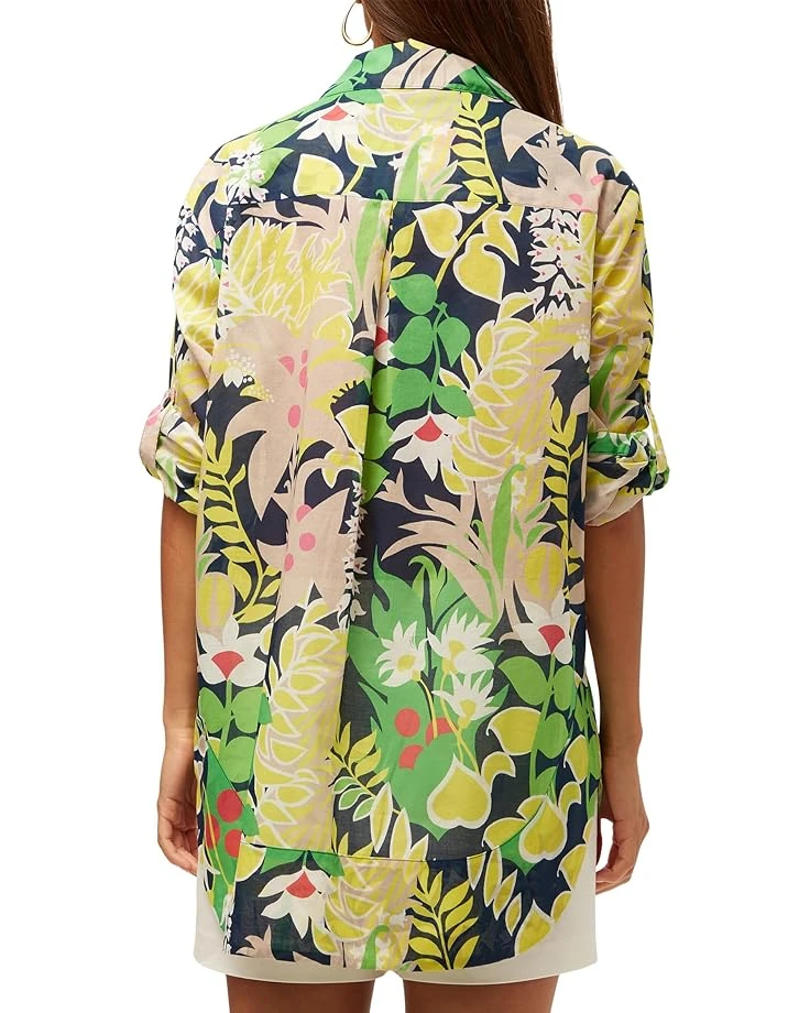 - Swing into effortless elegance wearing the Trina Turk™ Swing Top! Featuring a classic button-down design with a crisp collar neckline, this top pairs timeless sophistication with modern ease. The elbow-length cuffed sleeves add a polished touch, while the flattering shirttail hem ensures a chic silhouette. Designed in a regular fit, it’s perfect for everything from workdays to weekend brunches.