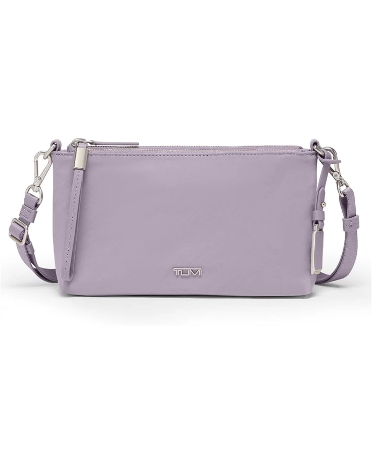 - Compact and feature-packed, the Tumi® Adela Crossbody features two separate compartments to keep you organized, including microfiber-lined and wipeable pockets that protect valuables and cosmetics alike. The magnetic snap closure of the purse keeps your stuff secure. Made from nylon and leather, this crossbody purse comes with a removable and adjustable crossbody strap that makes it easy to carry around. This stylish crossbody purse features microfiber lining in the center pocket and wipeable lining in the zippered back pocket.