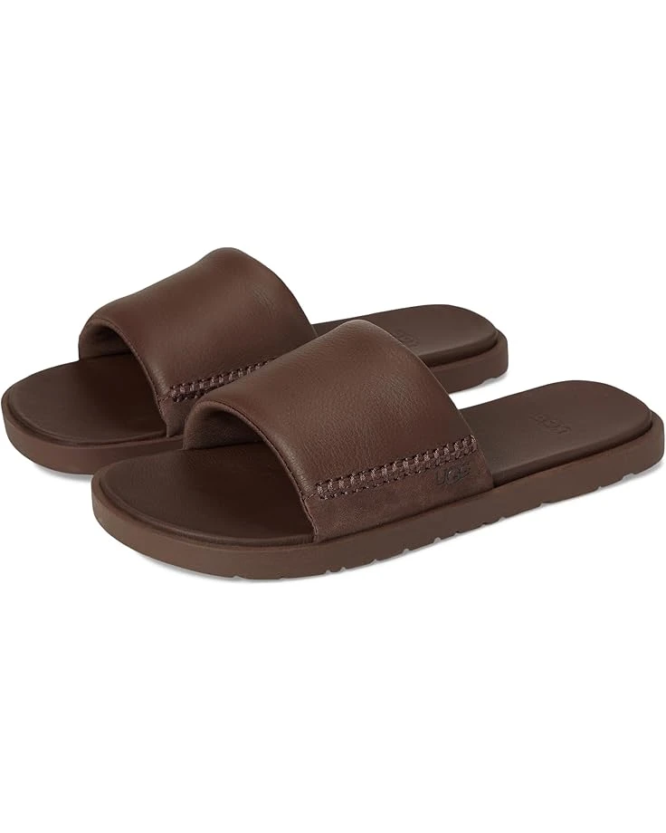 - Slip into leather luxury with the UGG® Seasdie II slide. The full-grain leather upper wraps you in softness from the smooth EVA footbed to the padded strap. The textile lining is made from 100% recycled polyester fibers. The contoured and cushioned footbed is also made from renewable sugarcane EVA, and an easy rubber outsole ensures a comfortable stride. Detailed with genuine suede, an open round-toe shape, and UGG®-classic box stitching, these slides are perfect for everyday casual wear.